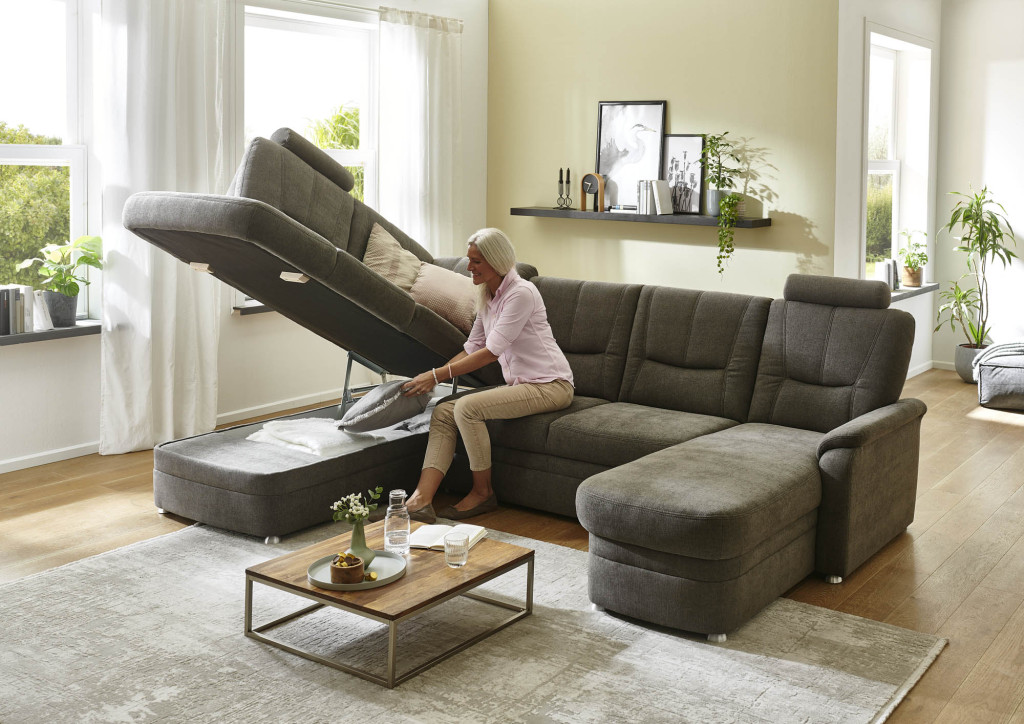 Webstoff, 100% Polyester, Farbe mocca, Sitz Super-Bonell-Federkern, Kunststoffgleiter schwarz, Sitzhöhe 46 cm, bestehend aus: