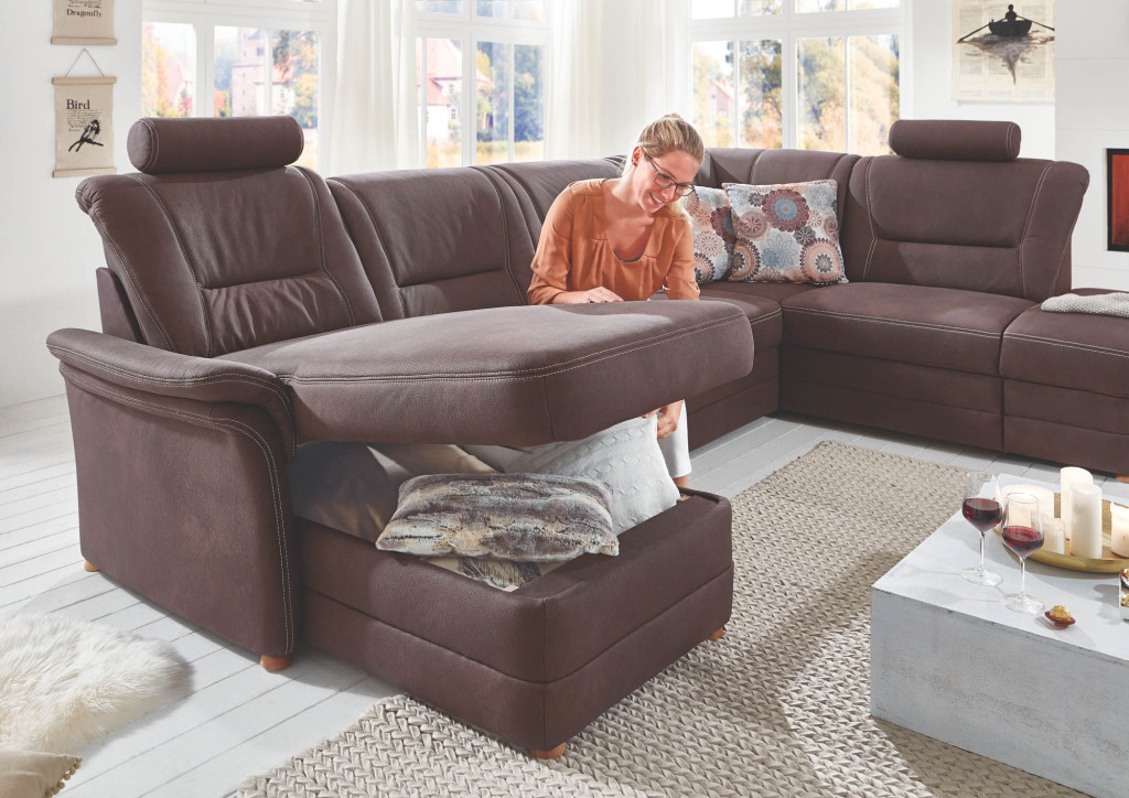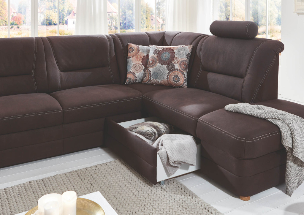 1,5-Sitzer mit Anstellhocker rechts, mit Schubkasten, Rücken echt, BHT ca. 129/96/92 cm