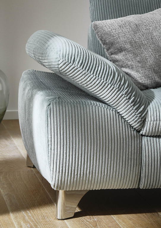 Stoff Cord, Farbe aqua, Rücken echt, Sitz Schaum, Metallfuß hochglänzend, Sitzhöhe 45cm, Sitztiefe 67cm, bestehend aus: