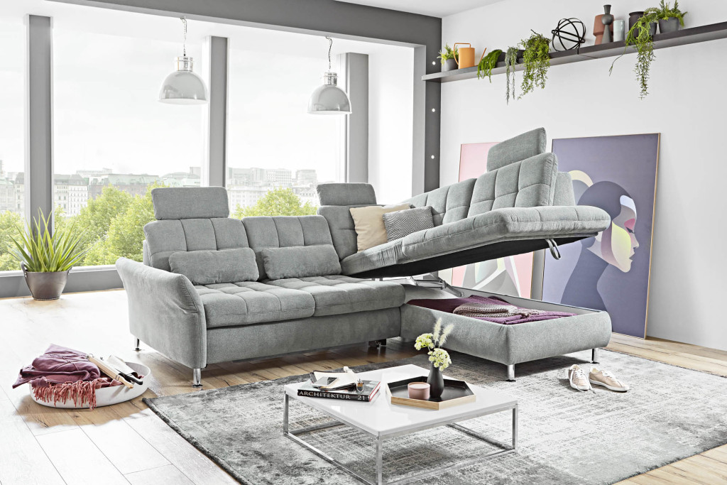 - optionale Auswahlmöglichkeiten wie Boxspringpolsterung, Sitztiefenverstellung und Liegearmlehne