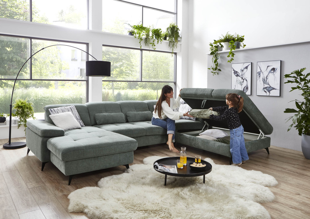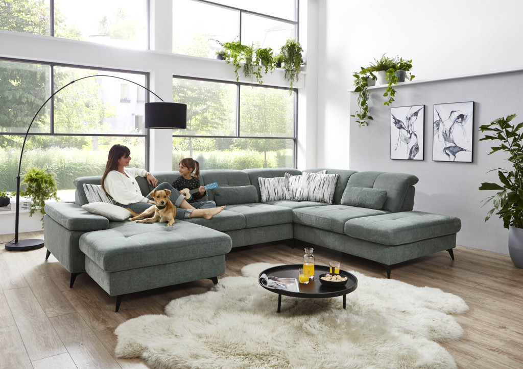 1,5-Sitzer Kombielement, inklusive Sitztiefenverstellung, Anstellhocker rechts, BHT ca. 137/84/124 cm