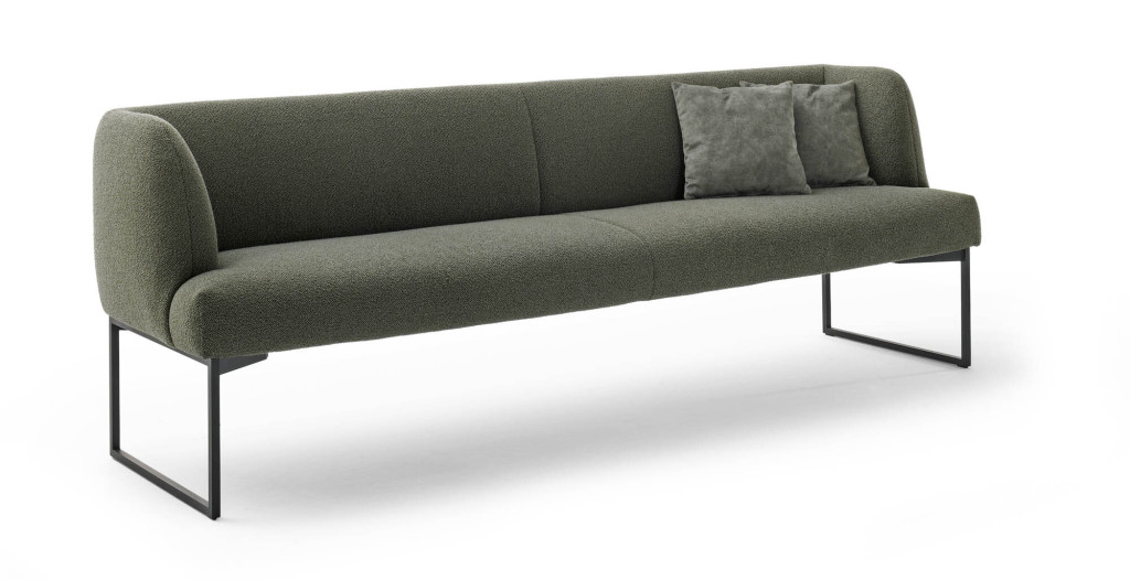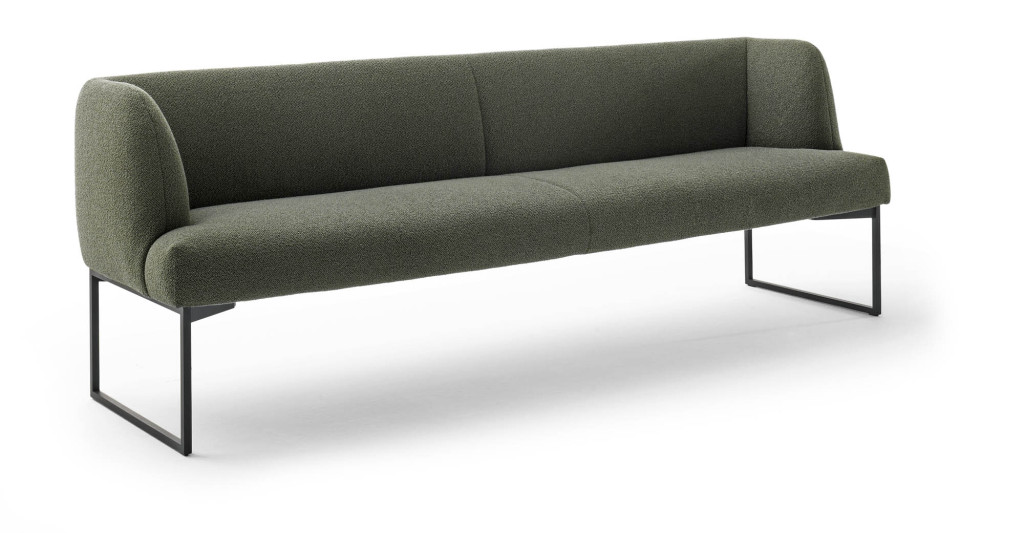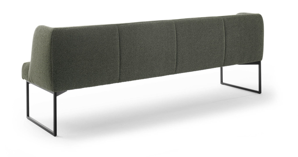 Stoff, 100% Polyester, Farbe khaki, Sitz mit Schaumauflage, Gestell Metall anthrazit matt, Sitzhöhe 49 cm, BHT ca. 240/87/64 cm