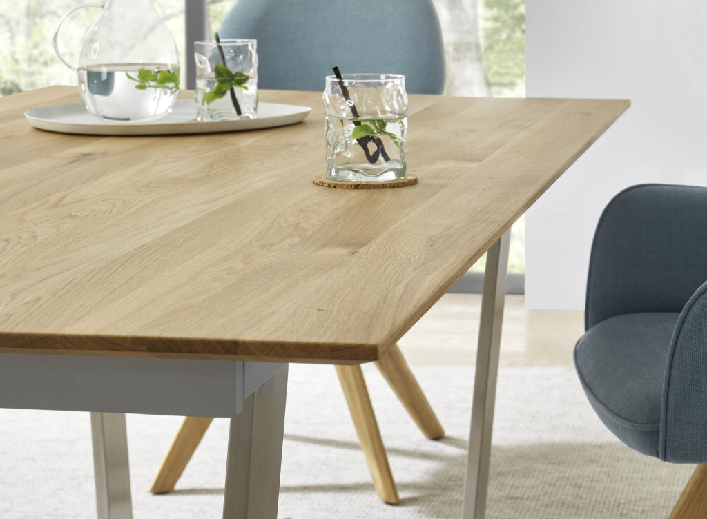 Stoff, 100% PET Recycling, Farbe eisblau, ohne Armlehne, Gestell Stativ Edelstahl gebürstet, fest ohne Funktion, Sitzhöhe 49 cm, BHT ca. 49/92/46 cm