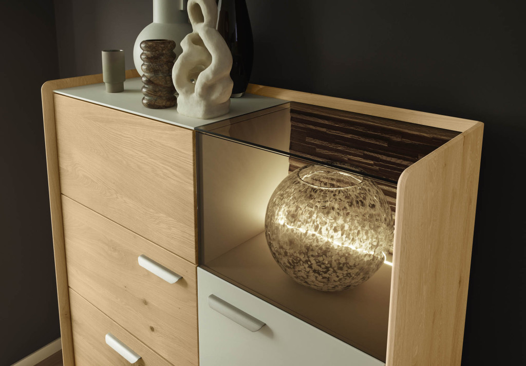 Platte Eiche massiv 27 mm, satin gebeizt matt lackiert, Soft-Edge-Profil SL13 - V-Gestell Eiche massiv, satin gebeizt matt lackiert LBH ca. 180/100/76 cm