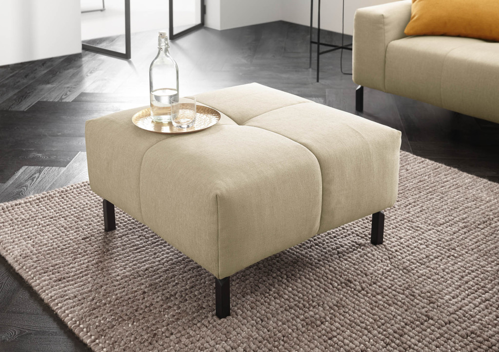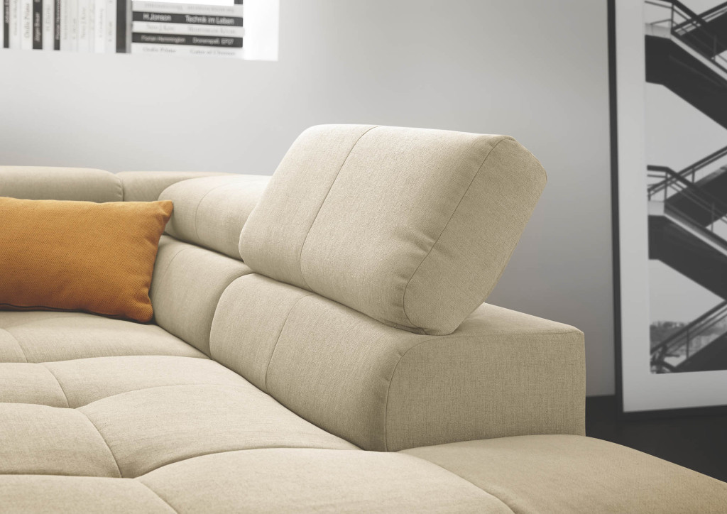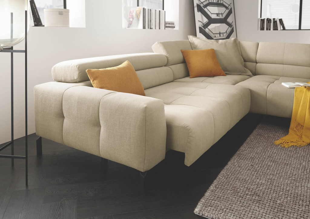 Stoff Picasso (PG 8), Farbe anthrazit, Sitzhöhe 42cm, Sitztiefe 70-88 cm, Metallfuß schwarz matt, bestehend aus: 22001 - 2-Sitzer, Armlehne links, Sitzvorzug motorisch (MP), Sitztiefe 88 cm, BHT ca. 164/71-85/109-112 cm 62043 - Eckelement + 1-Sitzer groß + Abschlussteil rechts, BHT ca. 144-147/71-85/219 cm Stellmaß ca. 308-311 x 219 cm