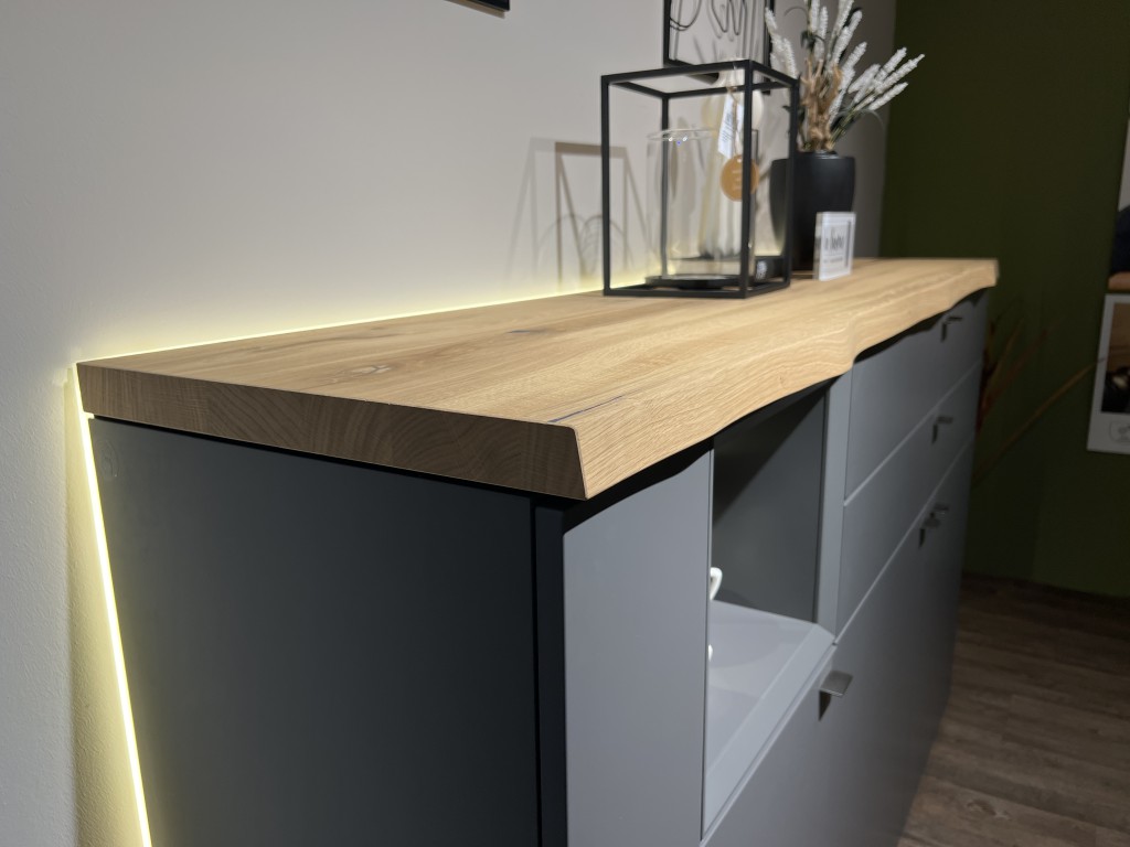 SideboardAusf. Lack schiefergrau matt Eiche rustico hell geöltB/H/T ca. 180/108/43 cminklusive- Beleuchtung - Ambiente - Beleuchtung- Trafo zum Abholpreis