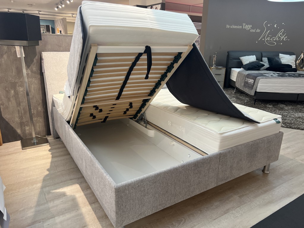 Polsterbett 180 x 200 cmmit Bettkasten und Federholzrahmen 28 LeistenFuß 15 cm hoch1 x Matratze Eco Flex LX 1000 T Mittel Härtegrad 21 x Matratze Eco Flex LX 1000 T Fest Härtegrad 3inkl. Kissen + Plaidzum Abholpreis