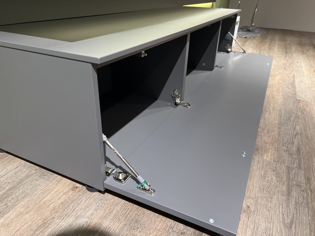 Wohnwand-Kombination Ausf. Lack schiefergrau matt Eiche rustico hell geöltB/H/T ca. 300/175/53 cminklusive- Beleuchtungspaket- Ambientebeleuchtungzum Abholpreis