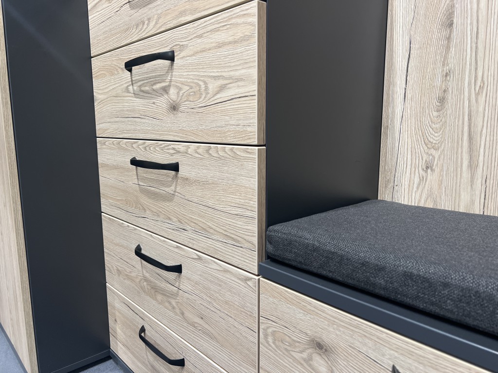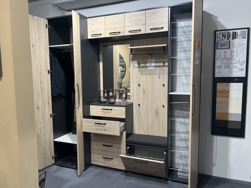 Garderoben-Kombination ROMKorpus Anthrazit DekorFront Sanremo Eiche Dekor Griff/Metallteile schwarz mattBreite 221 cm Höhe 223 cmzum Abholpreis