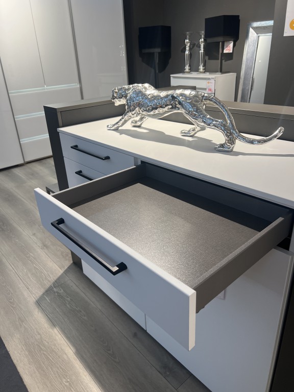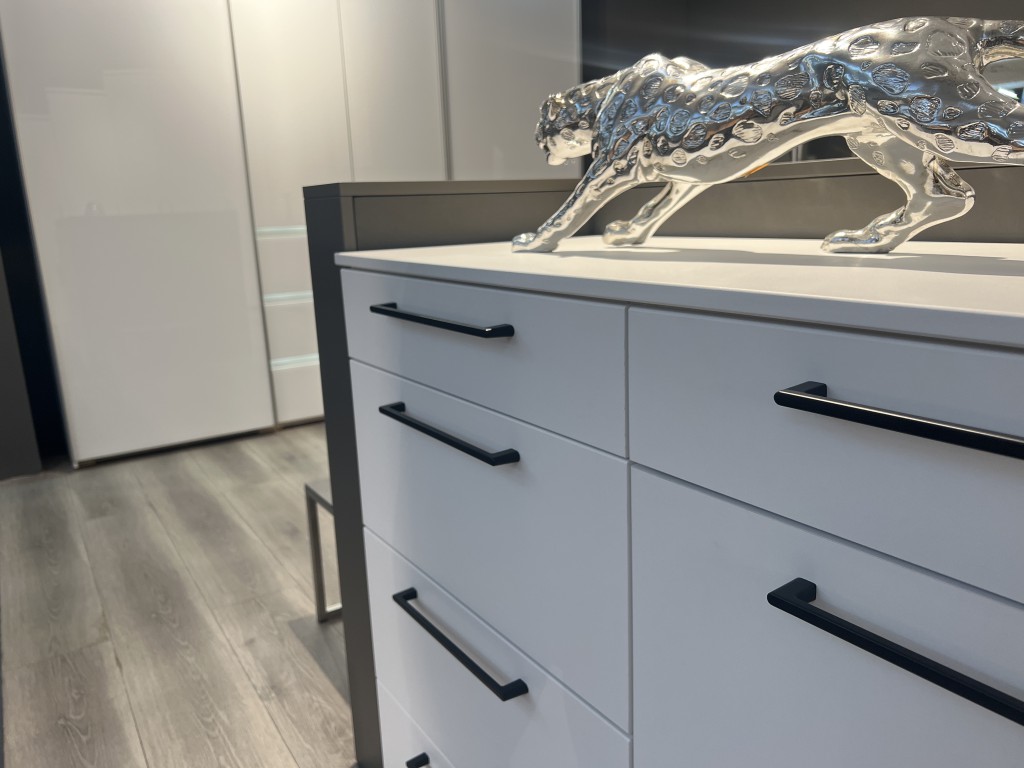 Kommodenkombination CASA-NOVA BASICmit 1 Tür re. und 5 Schubk.mit Holz-Oberplatte Front/Korpus PolarweißBügelgriff schwarzSchub-Innenfarbe Leinenoptik TwistFußausführung schwarzB/H/T 120/92/46 cmzum Abholpreis
