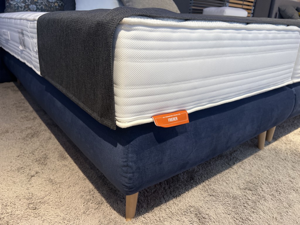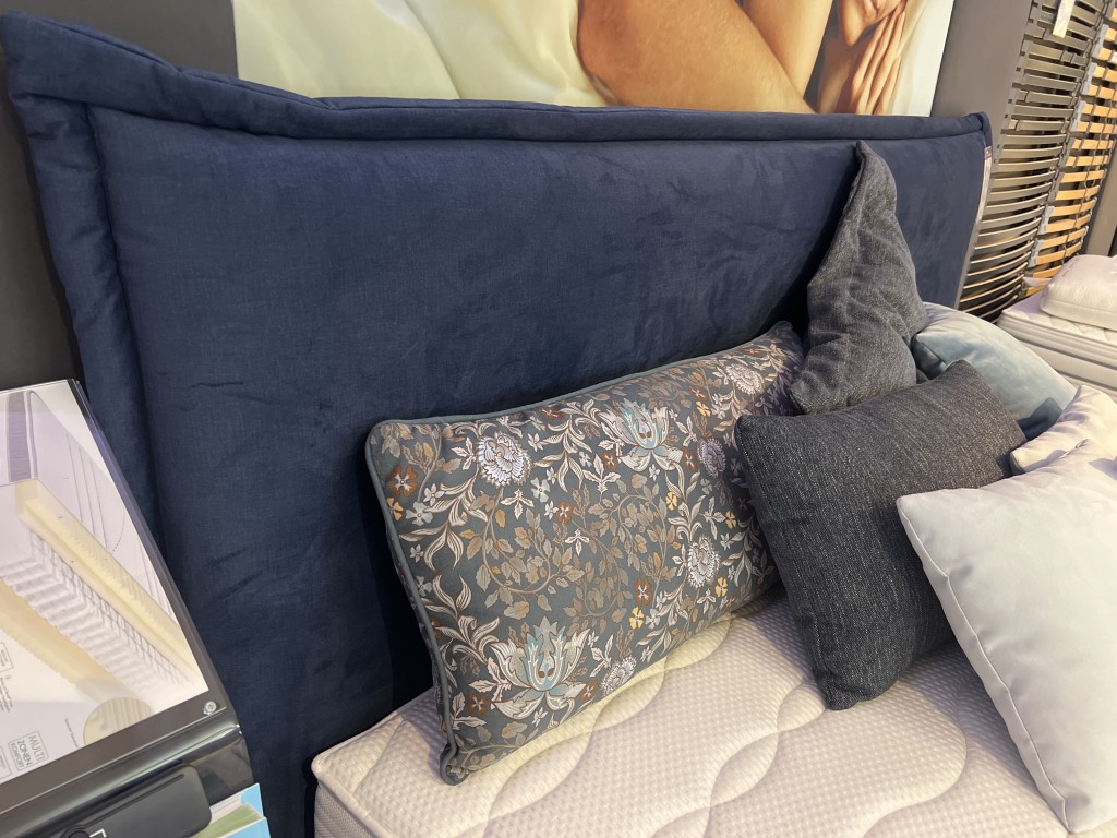 Boxspringbett 180 x 200 cm MILANO casadaKopfteil KT 302Bezug samt dunkelblau, Holzfuß Buche 15 cmBettbox modern gerundet1 x Matratze Cozy T H21 x Matratze Cozy T H3ohne Kissen